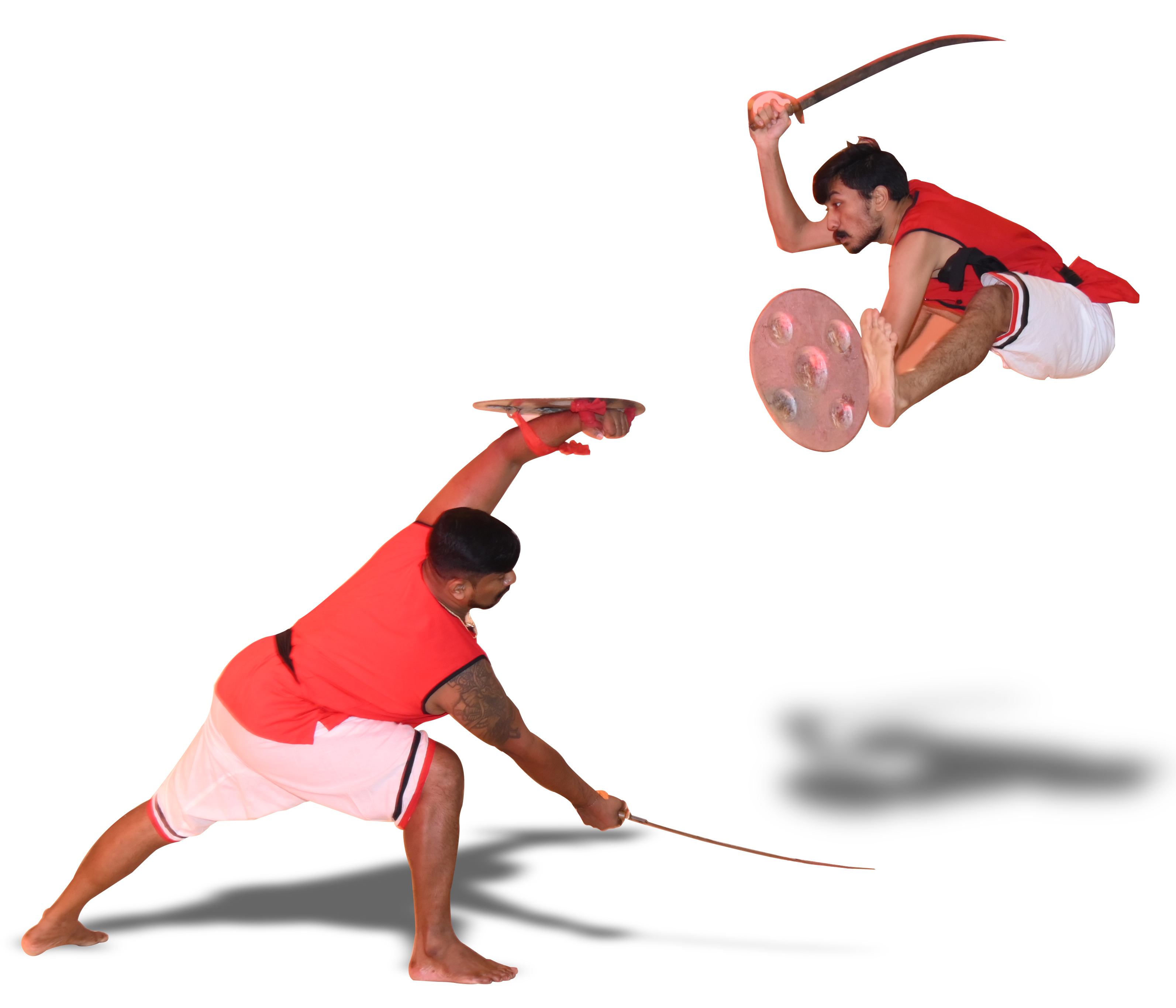 Kalaripayattu, a personal combat training system includes exercises to develop sharp reflexes for unarmed combat and skillful fight using sticks, dagger, knife, spear, sword and shield, Urumi etc. Kalaripayattu is noted for its high-flying acrobatics, graceful movements and employs the deadly weapons at ease. The Movements of Kalari are based on the mannerisms and fighting techniques of animals.