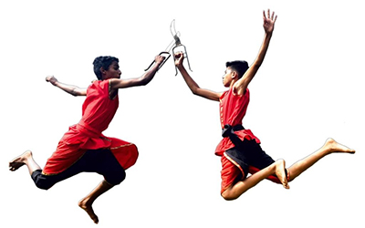 Kalaripayattu, a personal combat training system includes exercises to develop sharp reflexes for unarmed combat and skillful fight using sticks, dagger, knife, spear, sword and shield, Urumi etc. Kalaripayattu is noted for its high-flying acrobatics, graceful movements and employs the deadly weapons at ease. The Movements of Kalari are based on the mannerisms and fighting techniques of animals.