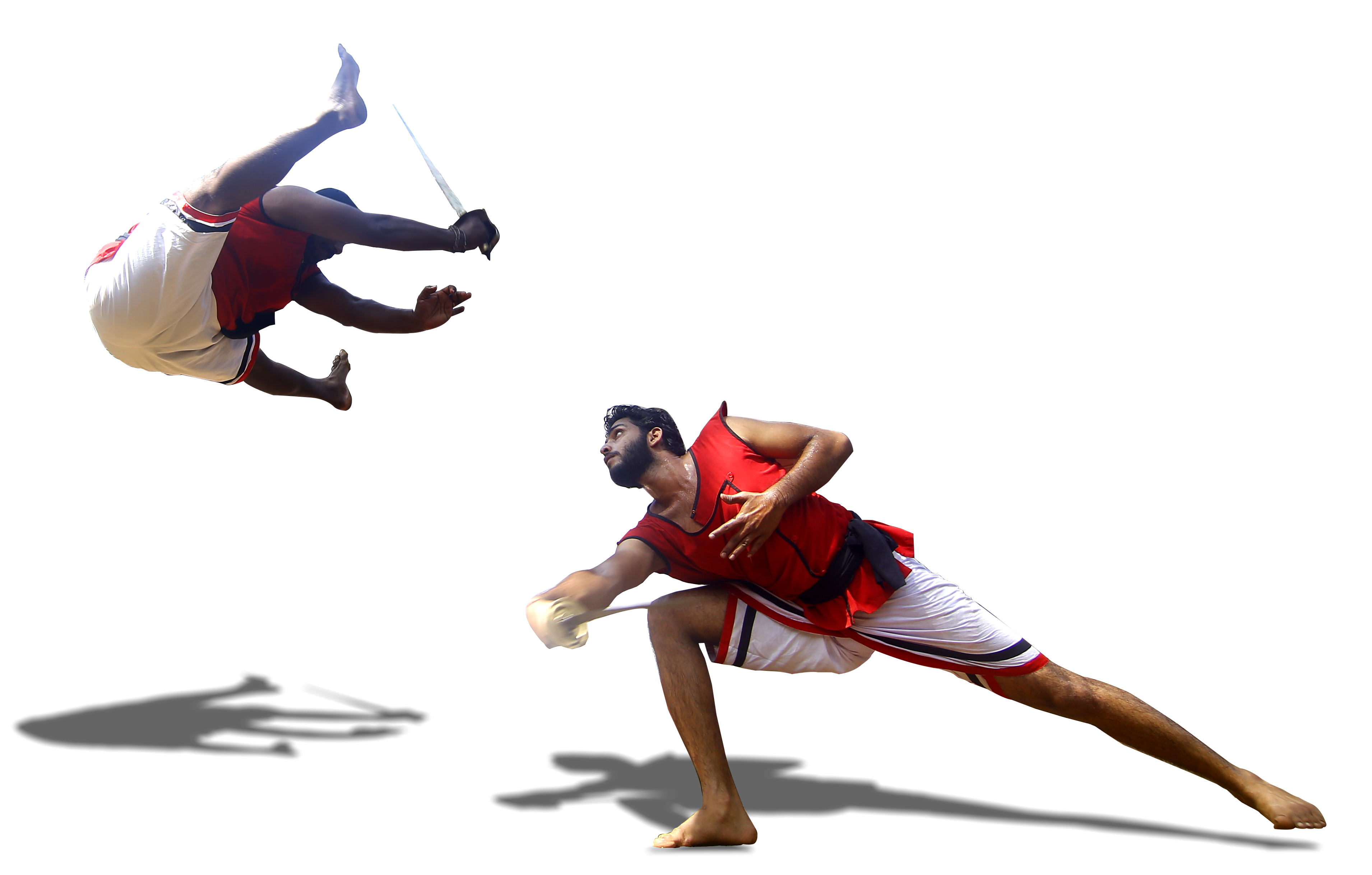 Kalaripayattu, a personal combat training system includes exercises to develop sharp reflexes for unarmed combat and skillful fight using sticks, dagger, knife, spear, sword and shield, Urumi etc. Kalaripayattu is noted for its high-flying acrobatics, graceful movements and employs the deadly weapons at ease. The Movements of Kalari are based on the mannerisms and fighting techniques of animals.